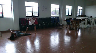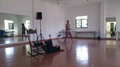 El ensayo de hoy trató de llevar a cierta incertidumbre antes de la ejecución de los movimientos de las frases armadas. Tratar de ver cómo se siente el cuerpo sin patrones o imágenes de por medio, y lanzarlos, tirarlos, desbordarnos. Durante algún momento pareció un juego, porque íbamos a la deriva pero admitiendo ciertas reglas: que al final hay que completar las frases durante la ejecución, y que para este punto el cuerpo ya debe de tenerlas en su registro, de modo que aún sin pensar en lo que sigue, el cuerpo sienta a lo que sabe y entonces siga el camino por pura sensación.