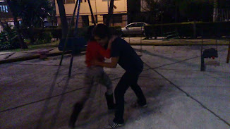 Comenzamos el montaje de la frase de construcción un viernes por la noche frente a la biblioteca central. En la frase he tratado de combinar una serie de movimientos que si bien no frenan el impulso anterior, lo cambian radicalmente de dirección, esto me hace sentir como un trabajo o esfuerzo grande, tan sólo en sensación puesto que no se ejecuta el esfuerzo de digamos mover un mueble. Integra elementos de una construcción propuestos por los intérpretes en una exploración previa: como tablas, bultos, tornillos, martillos. Pero todos fueron unificados después en una exploración que hice a solas teniendo como consigna hallar una fuerza opuesta que se enfrenta a la construcción, en este caso los vecinos que entorpecen la entrada de los materiales a la casa, pero que aún así forman parte del proceso de construcción, como las cosas pesadas. Los vecinos, aunque se oponen, son una parte importante del patíbulo.